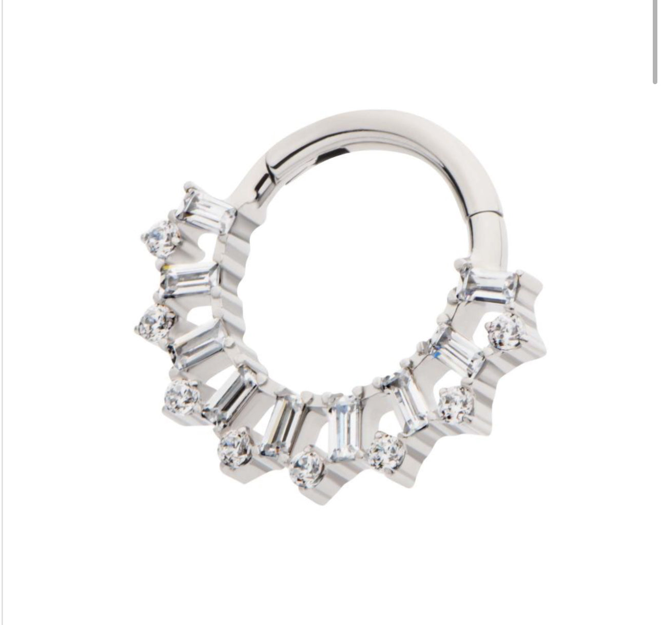 Titanium clustered prong set round & baguette CZ front facing hinged segment clicker | septum ring | daith ring | septum piercing | daith
